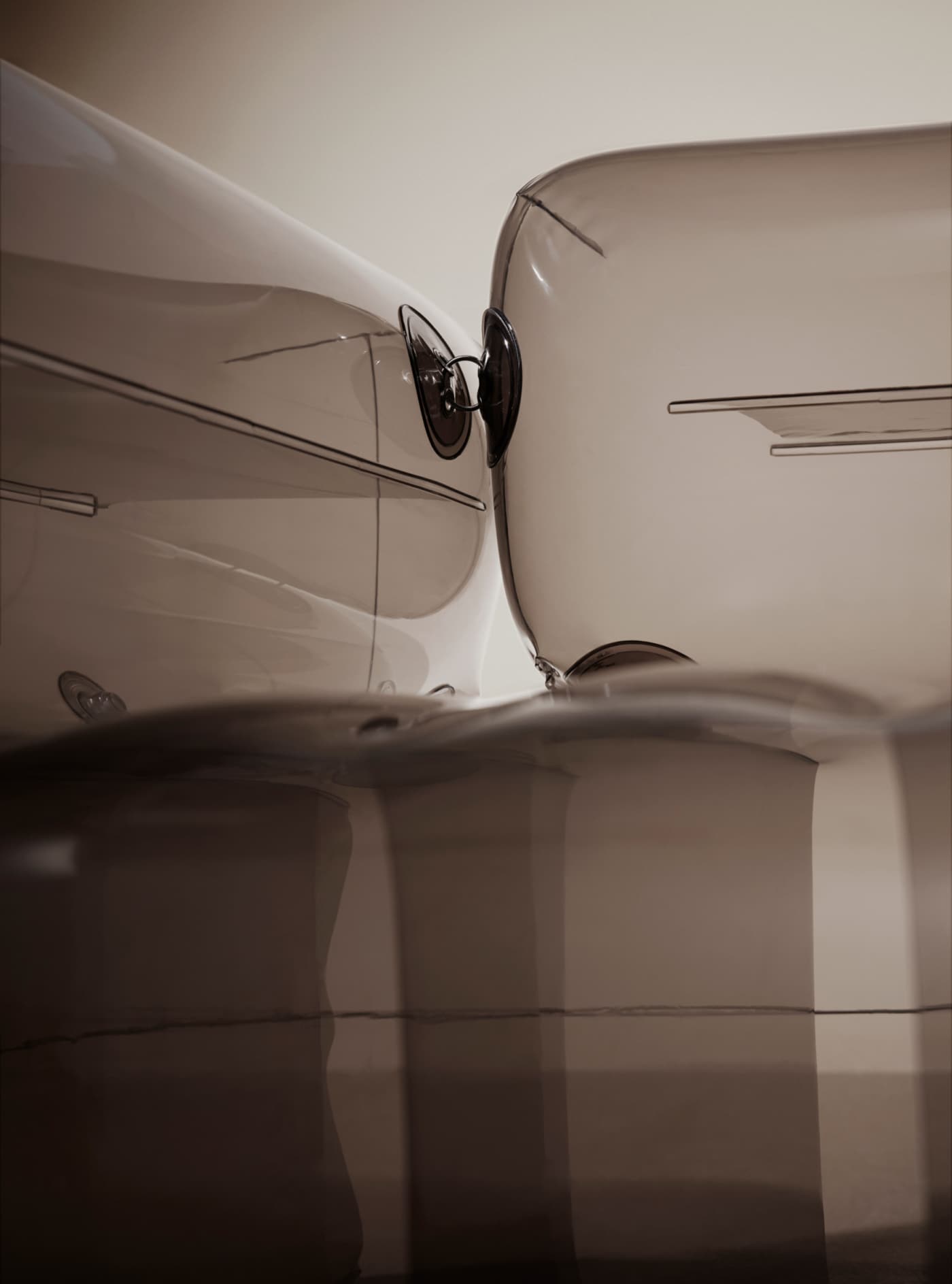 FOR THIS UNIQUE COLLABORATION, TWO ICONIC PIECES OF FURNITURE HAVE BEEN REISSUED FOR SAINT LAURENT RIVE DROITE : THE CHESTERFIELD SOFA AND THE CHESTER ARMCHAIR IN A TRANSPARENT SMOKY COLOR.